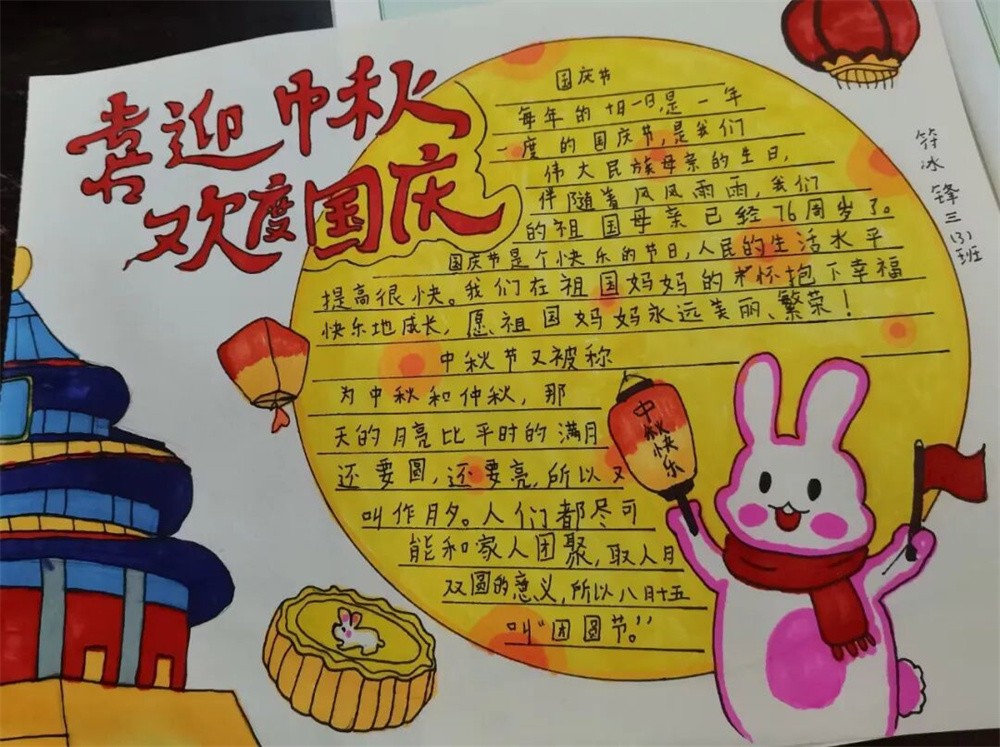 金秋十月,丹桂飘香,在国庆与中秋双节同庆的美好时节,我校开展的“迎国庆·中秋”双节特色实践作业活动圆满落下帷幕。全校学子积极参与,用创意与巧思,在不同年级的特色作业中,勾勒出对家国文化的独特理解,让传统文化在实践中焕发光彩。