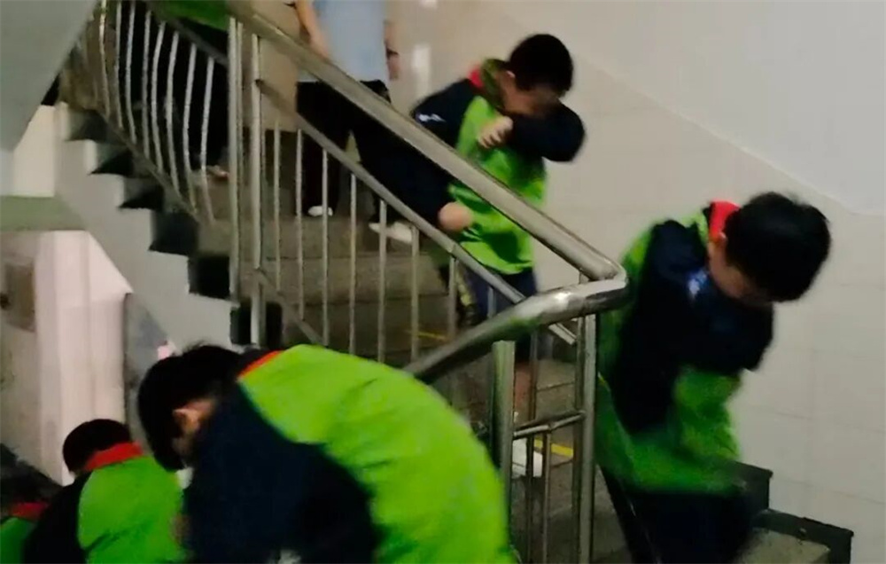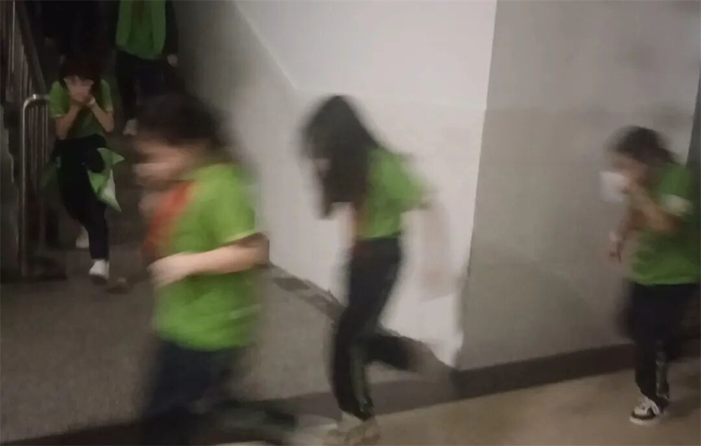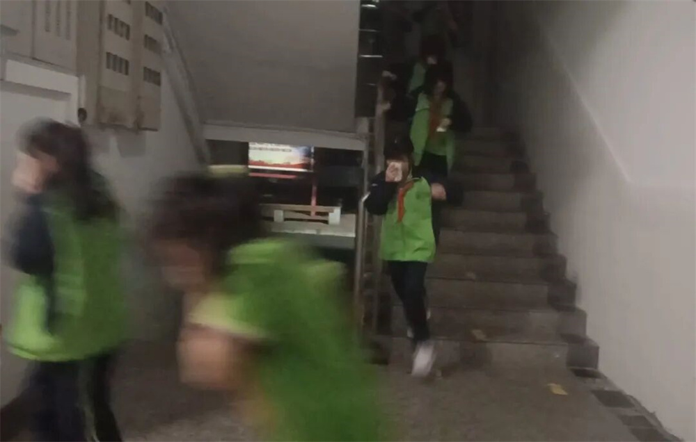 演练过程中,宿管老师迅速指导学生捂住口鼻,弯腰低姿,引导学生按照预定疏散路线快速有序向宿舍楼前集合地转移。