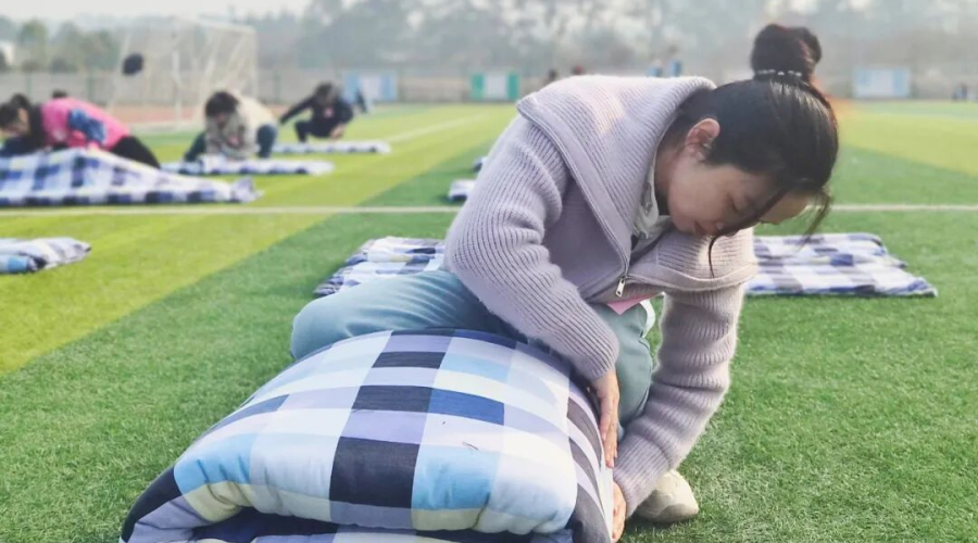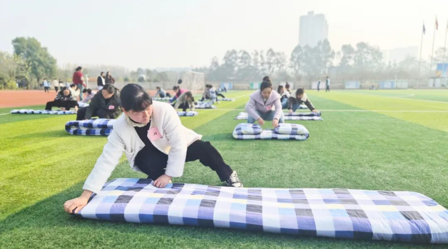 铺床叠被见真章考评现场亮点十足!叠方块被环节,老师们手法娴熟,床单平整无褶皱,被子棱角分明如“豆腐块”,尽显生活管理硬实力。