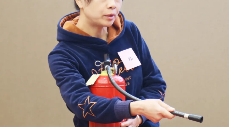 灭火器使用考评中,大家牢记操作步骤,拔销、对准、按压一气呵成,冷静规范完成火情处置模拟。