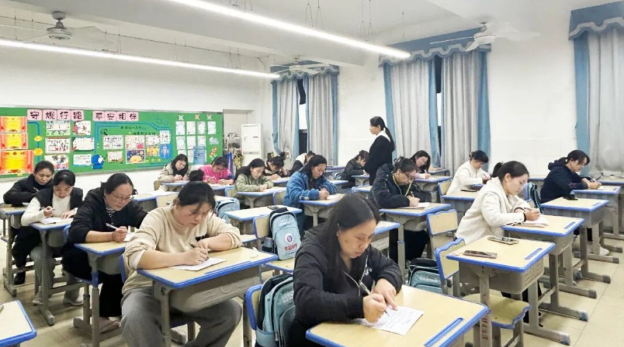 知识笔试验功底知识笔试场上,大家沉着答题,细致解读教育政策、校园安全等专业知识,夯实育人理论基础。