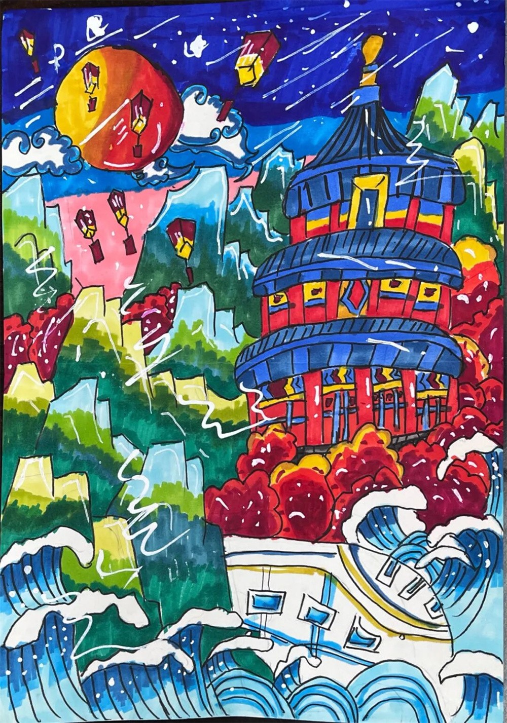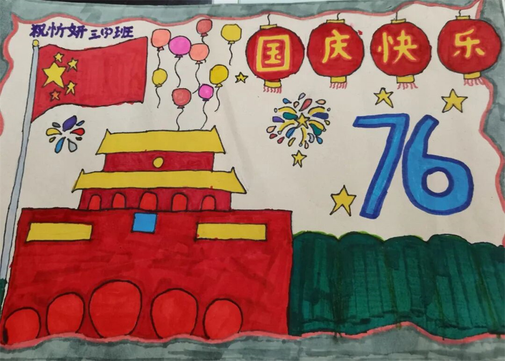 当国庆红旗遇上中秋明月,三、四年级的同学们拿起画笔,开启了一场“家国画卷”的创作之旅。
