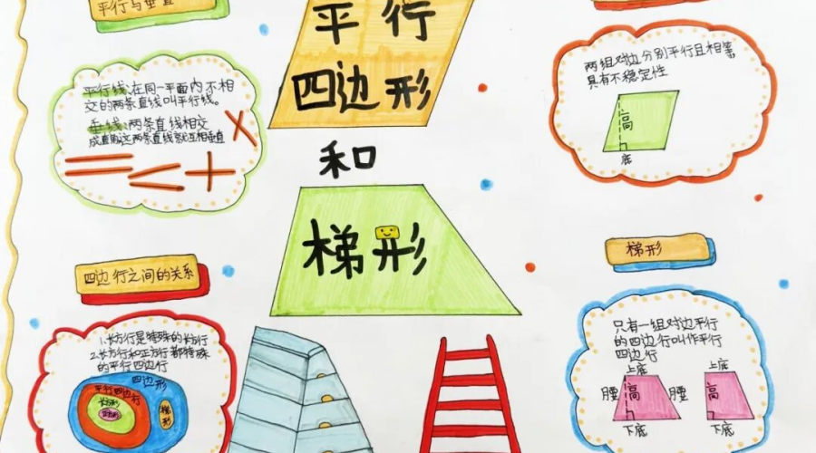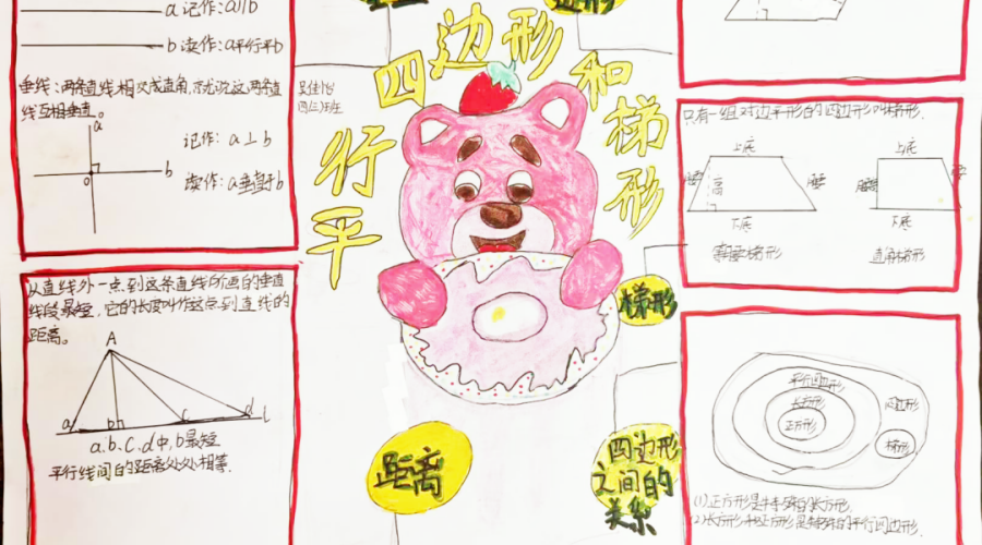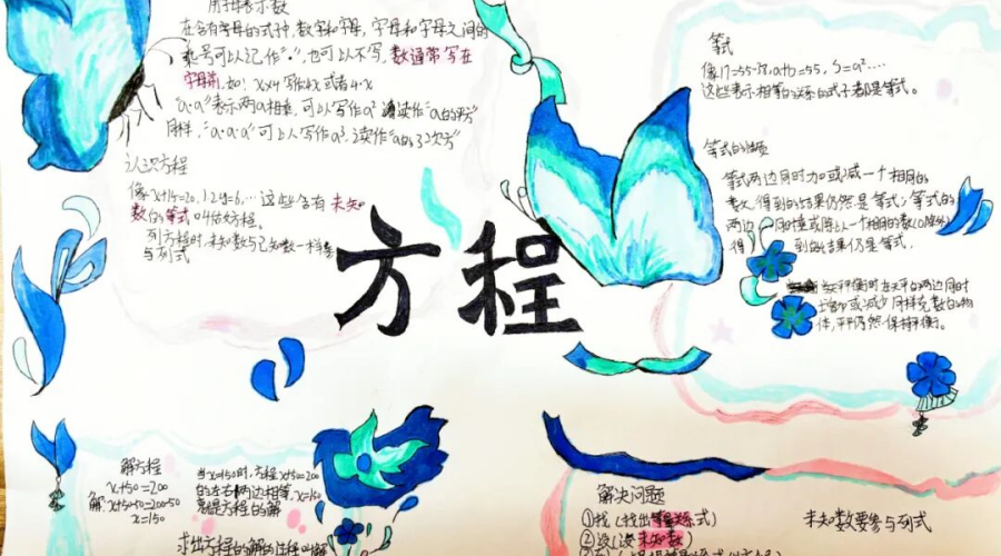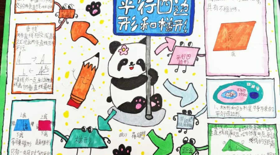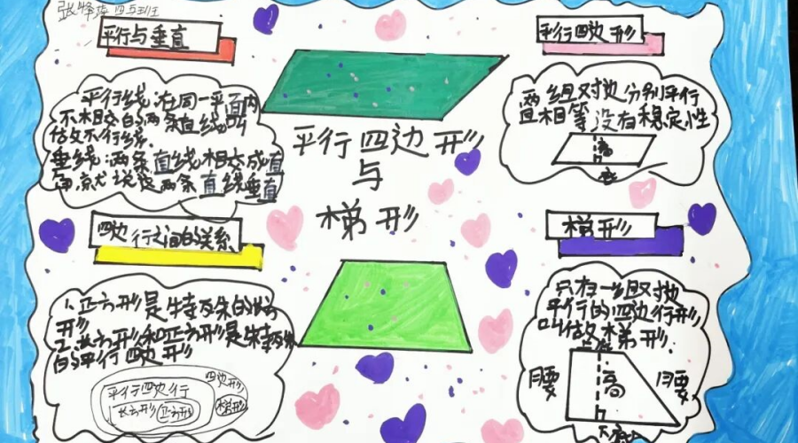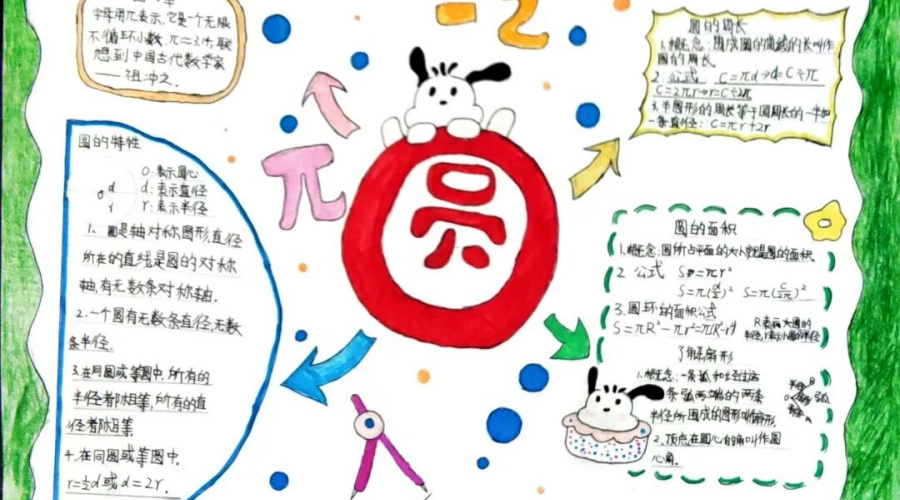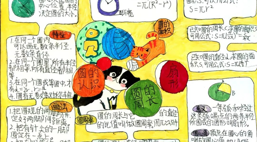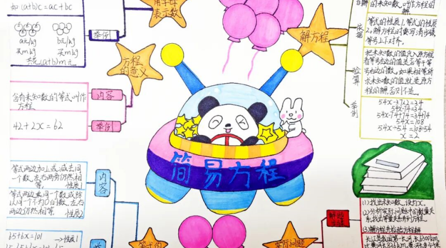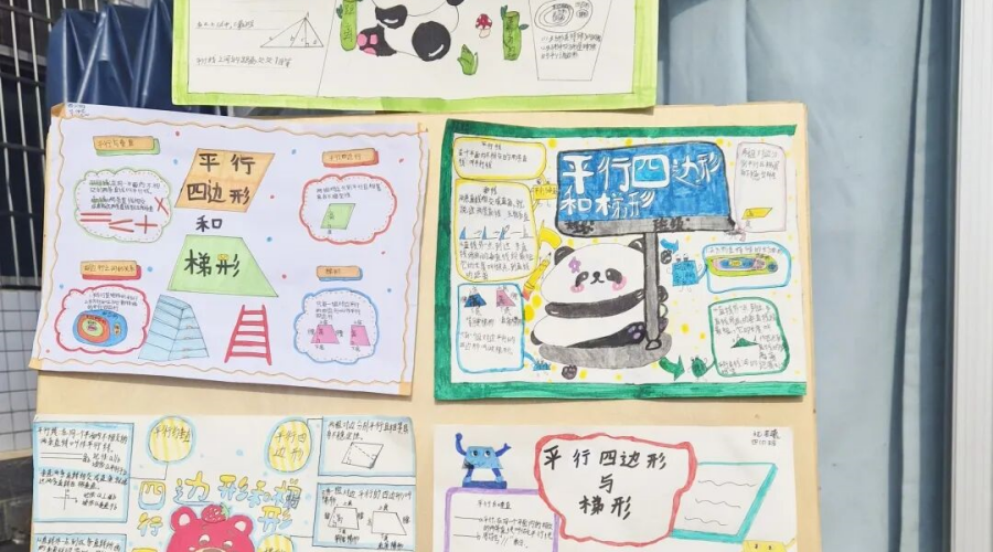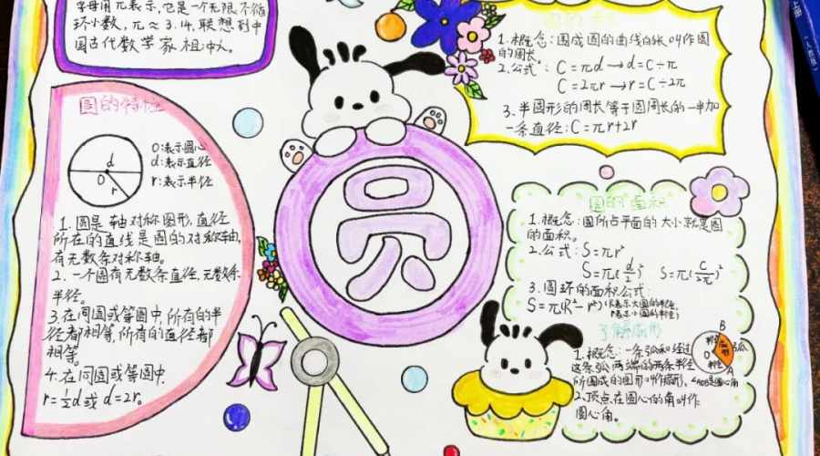 高年级同学的作品则更具探究性与综合性:四年级以“图形单元”为核心,搭配公式解读、生活实例,条理清晰又创意十足;五年级聚焦方程知识,展现了对代数思维的理解;六年级以“生活中的圆”为主题,同学们用作品诠释了圆的特性与应用价值。