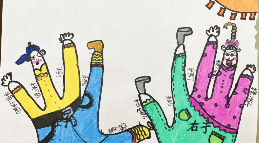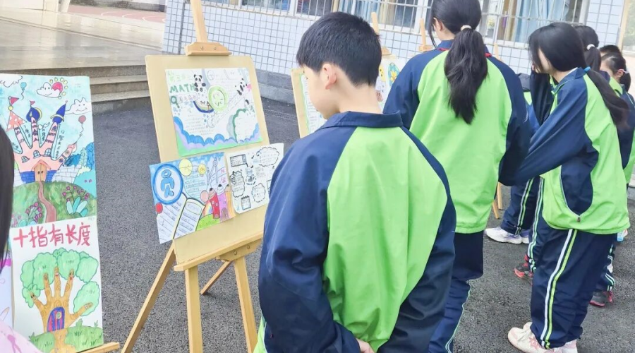 一年级以“数字开花”为主题,孩子们给数字赋予缤纷色彩与灵动造型,在动手创作中夯实了数字认知基础;二年级自制的“方向盘”兼具趣味与实用,转动轮盘的过程中,东、南、西、北等方位知识深深印入脑海;三年级围绕“十指有长度”展开创作,在对比与记录中直观理解长度单位的意义。